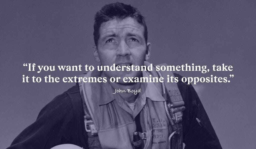 USAF Colonel John Boyd is famous for OODA—Observe, Orient, Decide, Act—but his deeper lesson is tempo: create mismatches the other side can't metabolize.